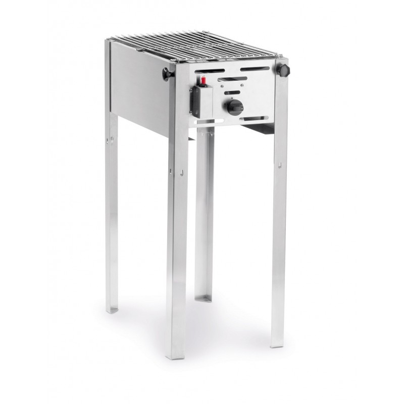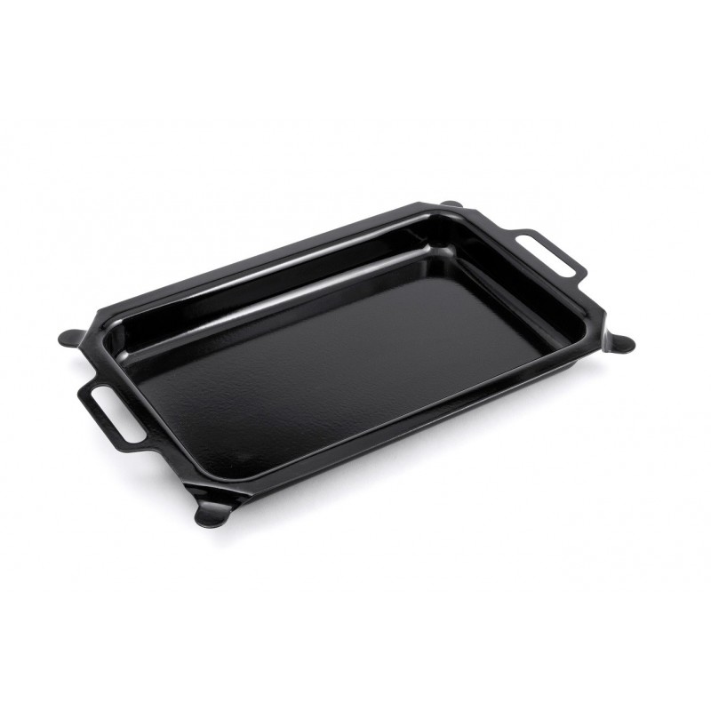 * Roestvaststalen frame met roestvaststalen grillrooster en geëmailleerde braadpan (290x480 mm inwendig)